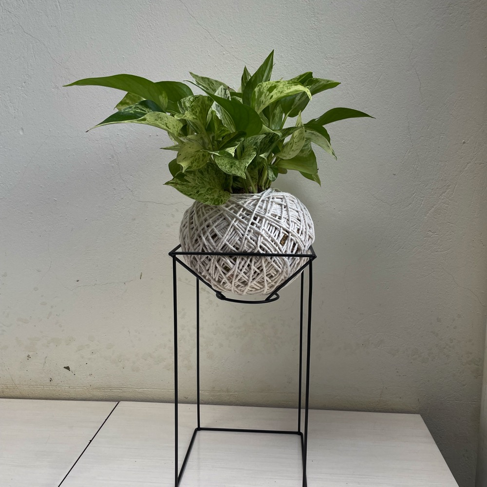 A Kokedama de Jiboia Branca com Suporte é uma peça decorativa natural, moderna e cheia de estilo. A jiboia branca se destaca pelas folhas verdes com variações claras, que trazem leveza e elegância ao ambiente. Cultivada na técnica japonesa da kokedama, acompanha suporte, tornando o conjunto ainda mais sofisticado e pronto para decorar.